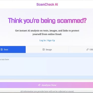 Multi-Modal AI Input: Developed a single, simple interface that allows users to input suspicious content via text, photos, or URLs for immediate analysis.