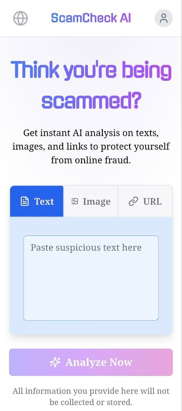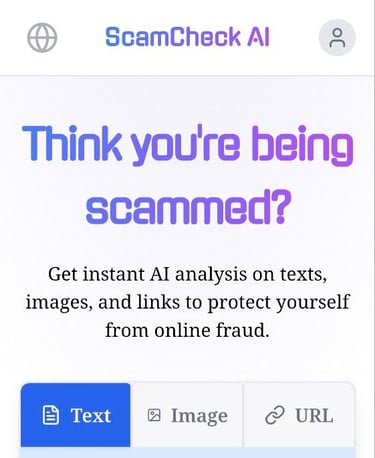 Multi-Modal AI Input: Developed a single, simple interface that allows users to input suspicious content via text, photos, or URLs for immediate analysis.